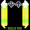 Description: Stepmania "hold" arrows and the phrase "HOLD ME".